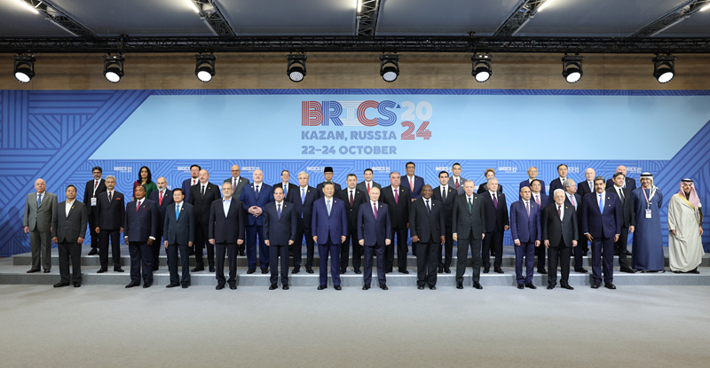當(dāng)?shù)貢r(shí)間10月24日上午,國家主席習(xí)近平在喀山會(huì)展中心出席“金磚+”領(lǐng)導(dǎo)人對話會(huì)并發(fā)表題為《匯聚“全球南方”磅礴力量 共同推動(dòng)構(gòu)建人類命運(yùn)共同體》的重要講話。這是出席對話會(huì)的金磚國家及嘉賓國領(lǐng)導(dǎo)人或代表、國際組織負(fù)責(zé)人集體合影。新華社記者 姚大偉 攝